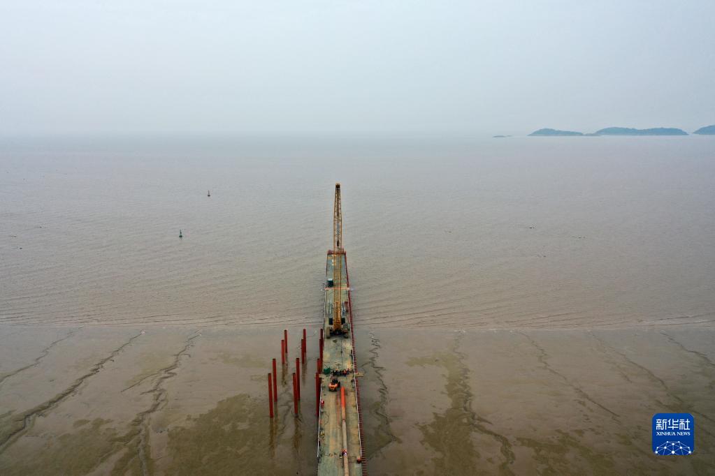工程人員在通蘇嘉甬高鐵杭州灣跨海鐵路大橋施工現(xiàn)場(chǎng)鋪設(shè)棧橋,為后期工程做準(zhǔn)備(2023年2月1日攝,無(wú)人機(jī)照片)。2022年11月30日開工建設(shè)的通蘇嘉甬高鐵杭州灣跨海鐵路大橋全程跨海,總長(zhǎng)約29.2公里,為設(shè)計(jì)時(shí)速350公里的雙線高速鐵路橋,是目前世界上在建長(zhǎng)度最長(zhǎng)、建設(shè)標(biāo)準(zhǔn)最高的高速鐵路跨海大橋。新華社記者 黃宗治 攝