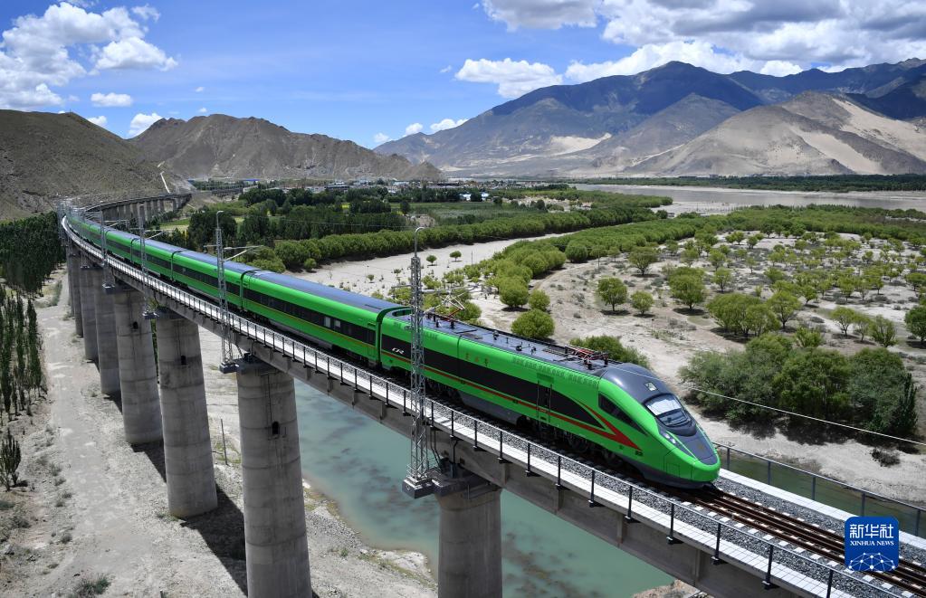 復興號列車行駛在西藏山南境內(nèi)(2022年6月22日攝)。新華社記者 覺果 攝