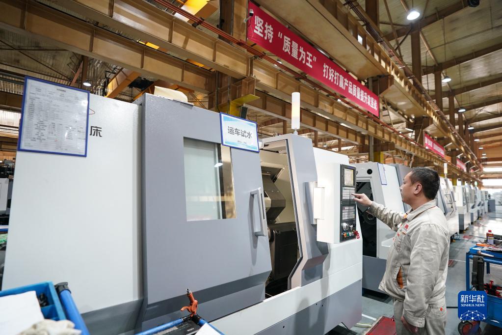 通用技術(shù)集團(tuán)沈陽(yáng)機(jī)床的工人在車(chē)間工作(2月14日攝)。新華社記者 潘昱龍 攝