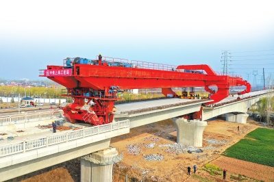 3月19日,濟(jì)鄭高鐵濮陽至省界段項目全部558榀箱梁順利完成架設(shè)任務(wù)。 郝慶凱 攝