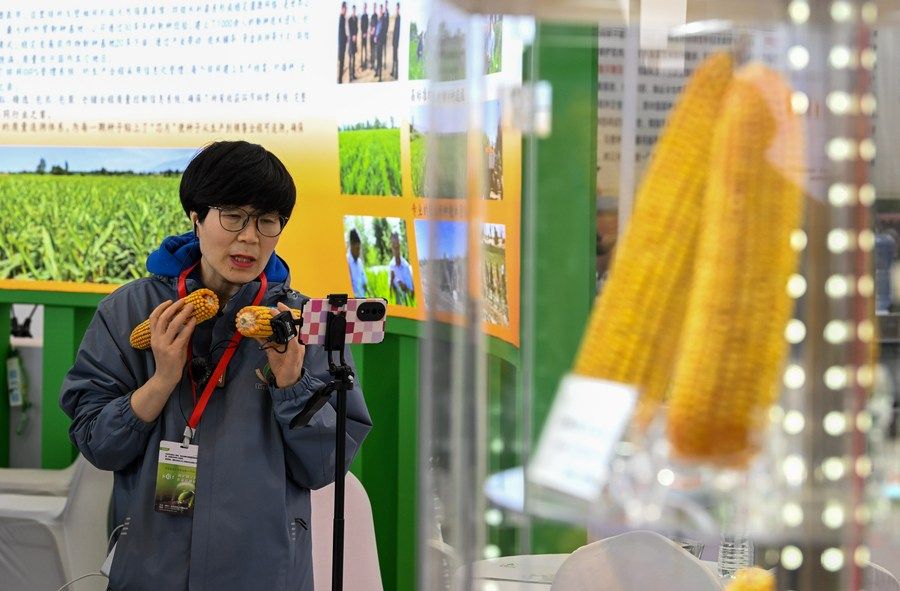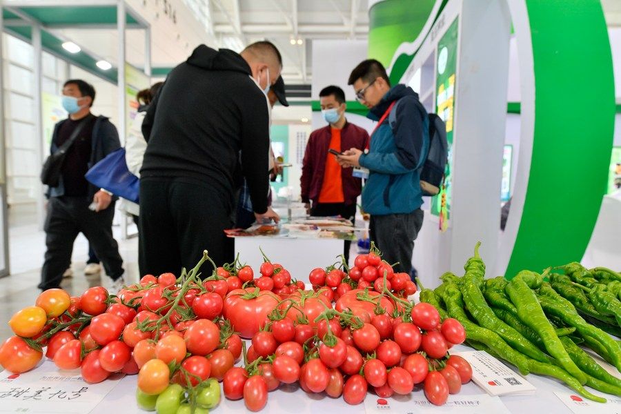 3月18日,參觀者和展商在展會上交流。當日,第十四屆中國國際種業(yè)博覽會暨第十九屆全國種子信息交流與產(chǎn)品交易會在天津市開幕。新華社記者 趙子碩 攝