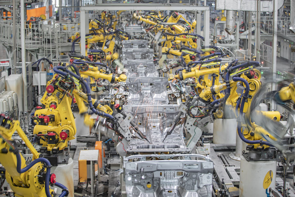 3月1日,在長(zhǎng)城汽車重慶永川生產(chǎn)基地焊裝車間,智能化焊接機(jī)器人在進(jìn)行焊接作業(yè)。新華社記者 黃偉 攝