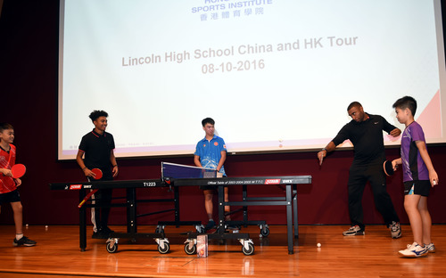 2016年10月8日,香港乒乓球運動員與林肯中學學生進行交流比賽。當日,來自美國華盛頓州塔科馬市林肯中學的師生到訪香港體育學院。