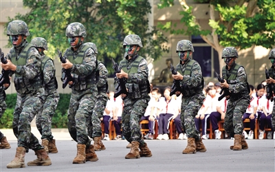 ??在軍事科目演示環(huán)節(jié),戰(zhàn)士們動作流暢、剛勁有力?!疤鸷沉耍∠M?歲的兒子長大后能夠成為一名軍人,保家衛(wèi)國,做真正的男子漢?!笔忻駞窍壬f。