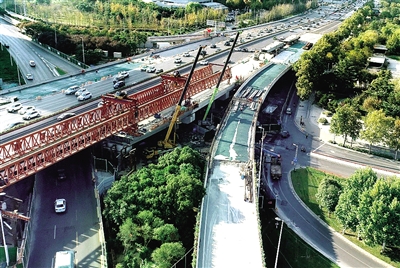 ??同時(shí),黃河路立交西向南匝道以及集散車道南段的鋼箱梁也完成架設(shè)和焊接,正在緊張地施工防撞墻和橋面鋪裝,預(yù)計(jì)11月下旬完成改造通車。