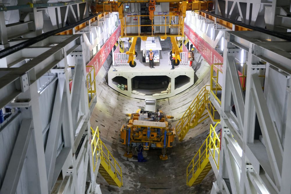 2024年2月16日,中鐵十四局集團(tuán)的建設(shè)者在京唐城際鐵路運(yùn)潮減河隧道施工。新華社記者 邢廣利 攝