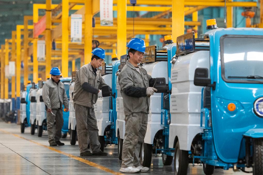 ?? 2月17日,在安徽省蕪湖市繁昌經(jīng)濟(jì)開(kāi)發(fā)區(qū)愛(ài)瑞特新能源專用汽車生產(chǎn)車間里,工人組裝新能源電動(dòng)清掃車。新華社發(fā)(肖本祥 攝)