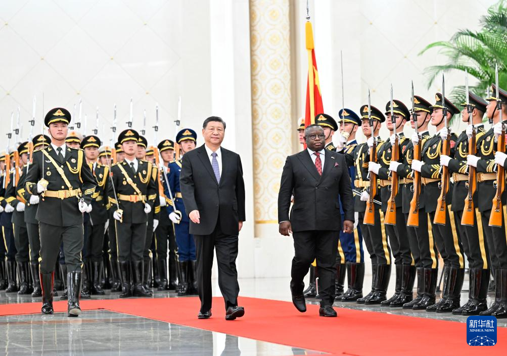 ??2月28日下午,國家主席習(xí)近平在北京人民大會堂同來華進(jìn)行國事訪問的塞拉利昂總統(tǒng)比奧舉行會談。這是會談前,習(xí)近平在人民大會堂北大廳為比奧舉行歡迎儀式。 新華社記者 殷博古 攝