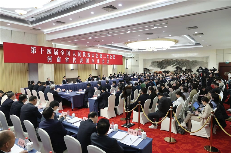 ?3月7日下午,十四屆全國(guó)人大二次會(huì)議河南代表團(tuán)舉行全體會(huì)議,并向境內(nèi)外媒體開放。本報(bào)記者 董亮 杜小偉 攝