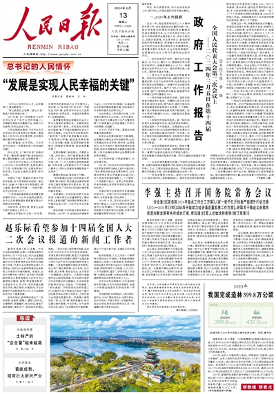 《 人民日報 》( 2024年03月13日 01 版)