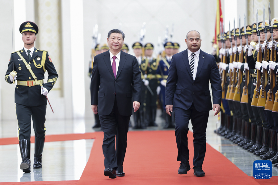 ??3月25日下午,國家主席習(xí)近平在北京人民大會堂同來華進(jìn)行國事訪問的瑙魯總統(tǒng)阿迪昂舉行會談。這是會談前,習(xí)近平在人民大會堂北大廳為阿迪昂舉行歡迎儀式。新華社記者 申宏 攝