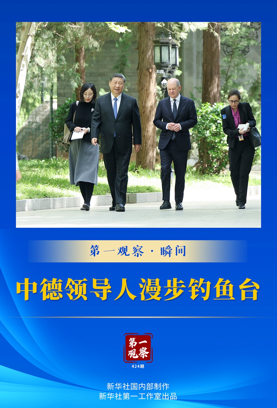 ??新華社記者的鏡頭,記錄下中德兩國領(lǐng)導(dǎo)人一起散步交流的畫面——
