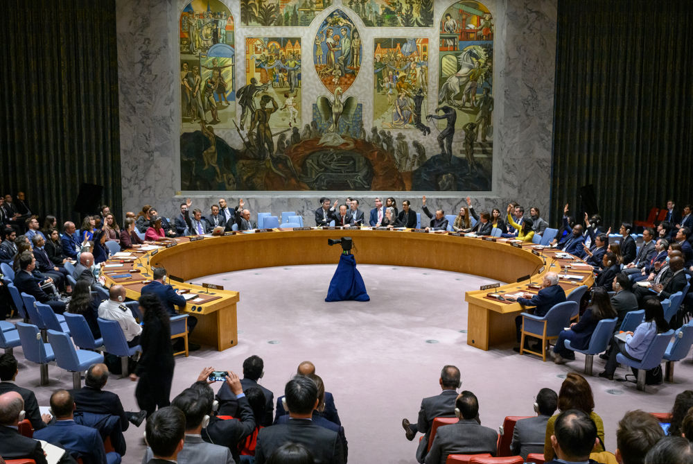 2023年11月15日,在位于紐約的聯(lián)合國(guó)總部,安理會(huì)就涉巴以局勢(shì)的決議草案進(jìn)行表決。新華社發(fā)(聯(lián)合國(guó)供圖/洛伊·費(fèi)利佩攝)