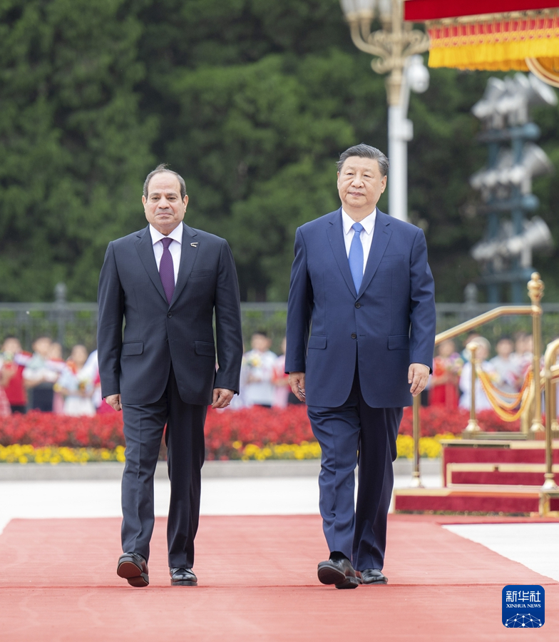 ??5月29日下午,國(guó)家主席習(xí)近平在北京人民大會(huì)堂同來(lái)華出席中國(guó)-阿拉伯國(guó)家合作論壇第十屆部長(zhǎng)級(jí)會(huì)議開(kāi)幕式并進(jìn)行國(guó)事訪問(wèn)的埃及總統(tǒng)塞西舉行會(huì)談。這是會(huì)談前,習(xí)近平在人民大會(huì)堂東門(mén)外廣場(chǎng)為塞西舉行歡迎儀式。新華社記者 丁海濤 攝