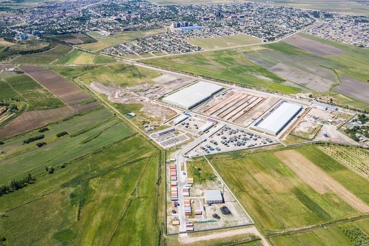 ??這是2019年5月21日在塔吉克斯坦丹加拉拍攝的中泰紡織廠(無人機(jī)照片)。新華社記者 張若玄 攝