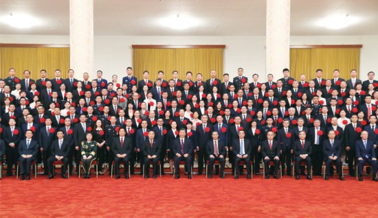 今天,我們隆重召開全國抗擊新冠肺炎疫情表彰大會,向作出杰出貢獻的功勛模范人物頒授共和國勛章和國家榮譽稱號獎章,表彰抗疫先進個人和先進集體,弘揚偉大抗疫精神,為決勝全面建成小康社會、奪取新時代中國特色社會主義偉大勝利而不懈奮斗!
